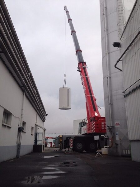 La S.A.S. DECHAMBRE effectue la manutention et l’installation de matériel pour les industries agroalimentaires et pharmaceutiques de : tanks de stockage et cuves, machines lourdes de production => systèmes utilisés : coussins d’air, rollers, conception de châssis adaptés, grutage, transport.